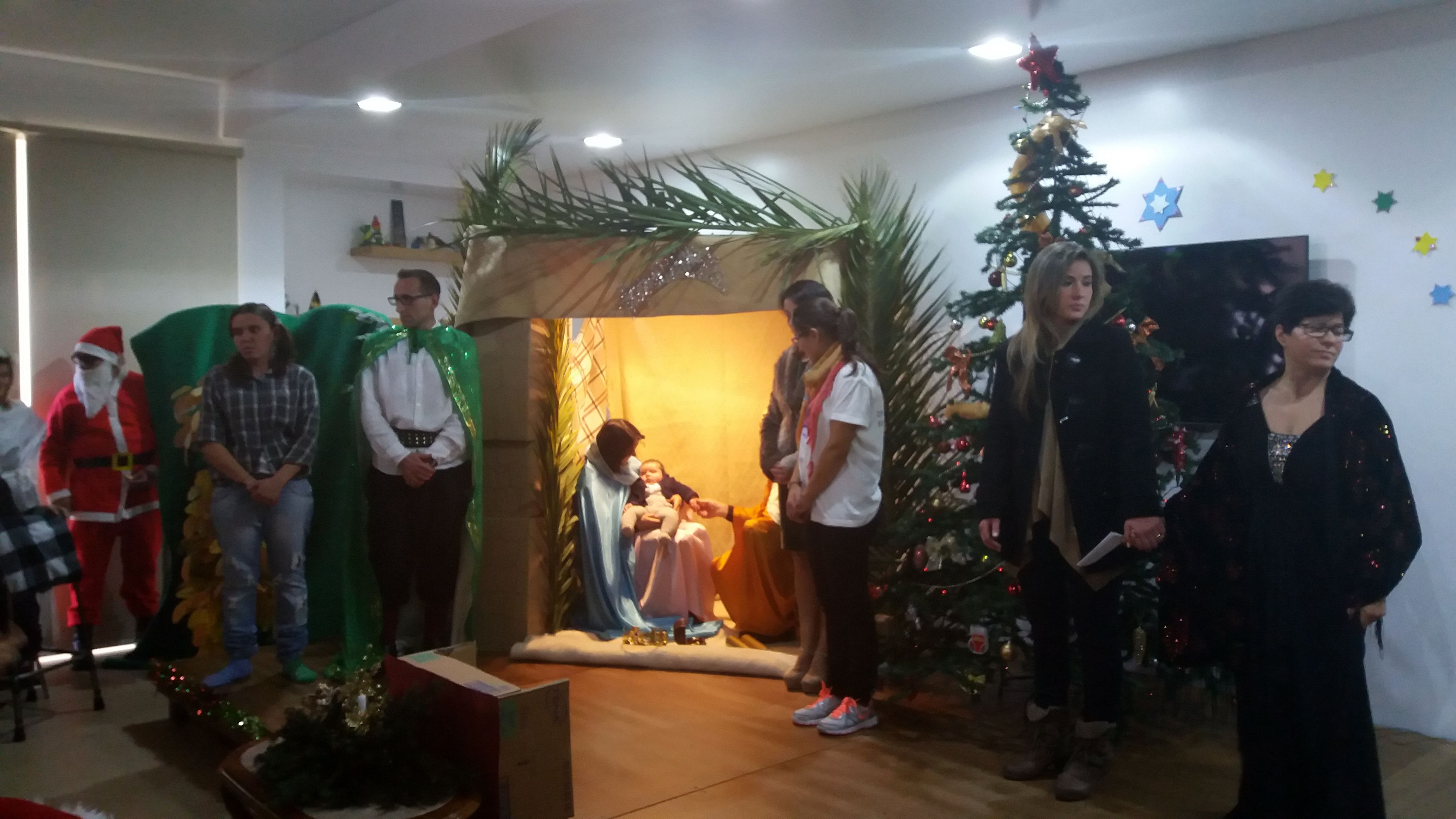 A festa decorreu na parte da tarde no salão multiuso, teve início com o grupo coral da “ERPI” devidamente preparado e equipado para o efeito, seguido de uma mensagem de Natal. De seguida tivemos uma belíssima representação de uma dança dos clientes\utentes dependentes e semidependentes; a continuação tivemos a declamação de um poema de autoria de um cliente/utente invisual, e por fim uma peça de teatro cujo tema “A dádiva Perfeita impressionou toda a plateia deixando uma maravilhosa Mensagem de Natal , pois a melhor dávida que podemos dar ao Menino Jesus é o nosso Amor, o nosso coração e a união entre nós.